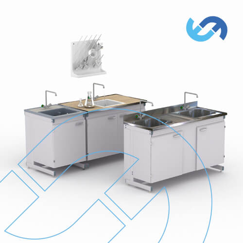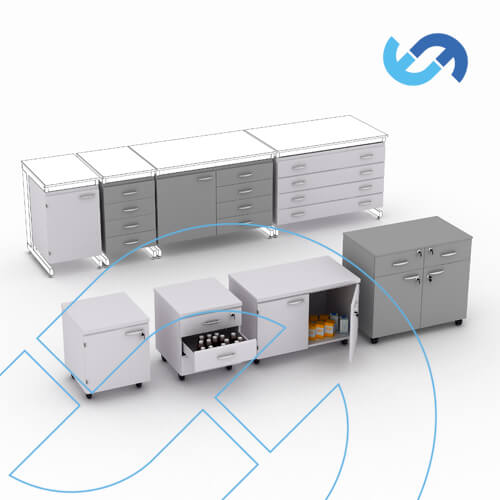 Доступні модифікації столів і острівних комплексів сервісними надставками, підвісними та мобільними тумбами, торцевими столами для забезпечення зручності користування і сучасного дизайну лабораторних приміщень.