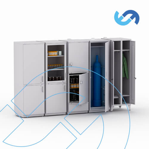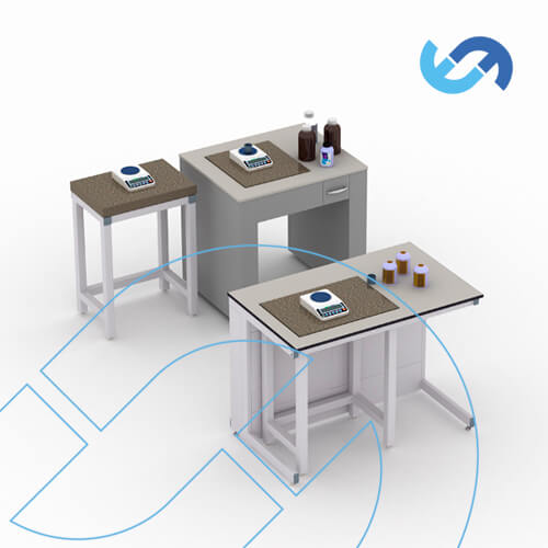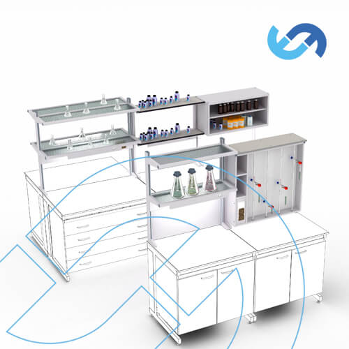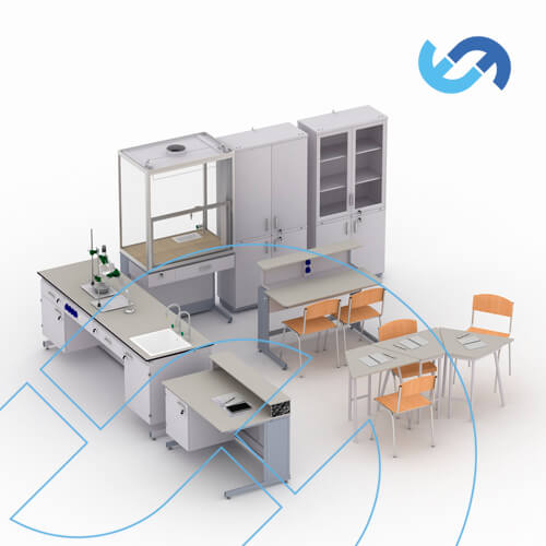 Лабораторні столи, витяжні шафи, столи вагові, лабораторні мийки мають міцний металевий каркас, а корпус виконується з хімічно стійких матеріалів: листової сталі з порошковим покриттям або ламінованої ДСП (18 мм). Для компенсації нерівностей підлоги меблі обладнані регульованими опорами.